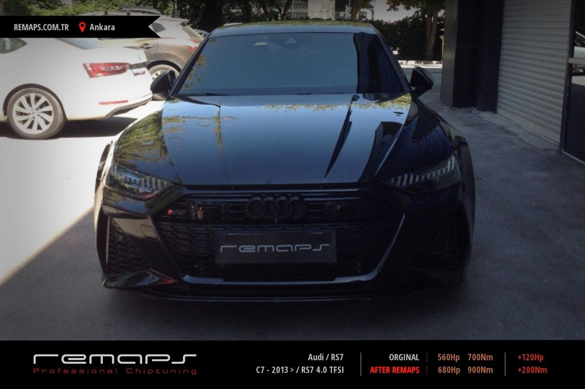 Audi RS7 model benzinli aracınızın ürettiği 560hp / 700nm motor gücünü, Türkiye normlarında hazırladığımız chip tuning (ecu) yazılım uygulaması sonrasında, 680hp / 900nm ’lik performansa ulaşmasını sağlamaktayız. Kazanılan +120hp / + 200nm güç artışı sonrasında aracınızın egzoz emisyon değerleri kesinlikle değişmemekte ve duman atmamaktadır.