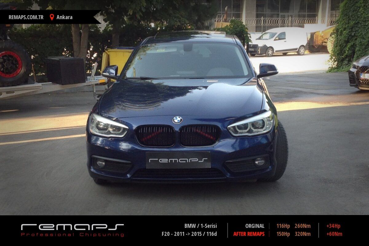 BMW 1-Serisi model dizel aracınızın ürettiği 116hp / 260nm motor gücünü, Türkiye normlarında verimli hale getirmek adına hazırladıgımız chip tuning (ecu) yazılım uygulaması sonrasında, 150hp / 320nm ’lik performans artışı öngörmekteyiz. Kazanılan + 34hp / + 60nm güç artışı sonrasında kesinlike çevreye rahatsızlık vermeyecek (duman atmayacak) şekilde eksoz emisyon değerleriniz korunarak hazırlanmaktadır.