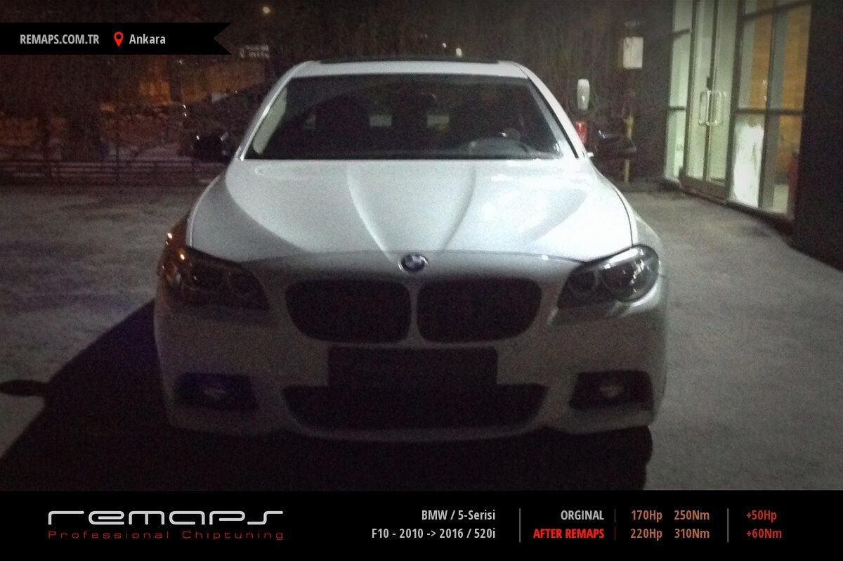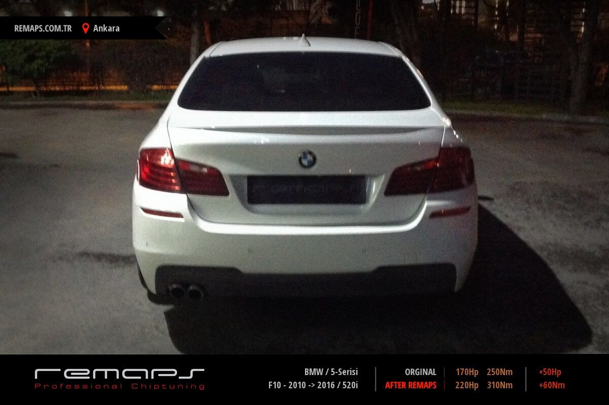 BMW 5-Serisi model benzinli aracınızın ürettiği 170hp / 250nm motor gücünü, Türkiye normlarında hazırladığımız chip tuning (ecu) yazılım uygulaması sonrasında, 220hp / 310nm ’lik performansa ulaşmasını sağlamaktayız. Kazanılan +50hp / + 60nm güç artışı sonrasında aracınızın egzoz emisyon değerleri kesinlikle değişmemekte ve duman atmamaktadır.