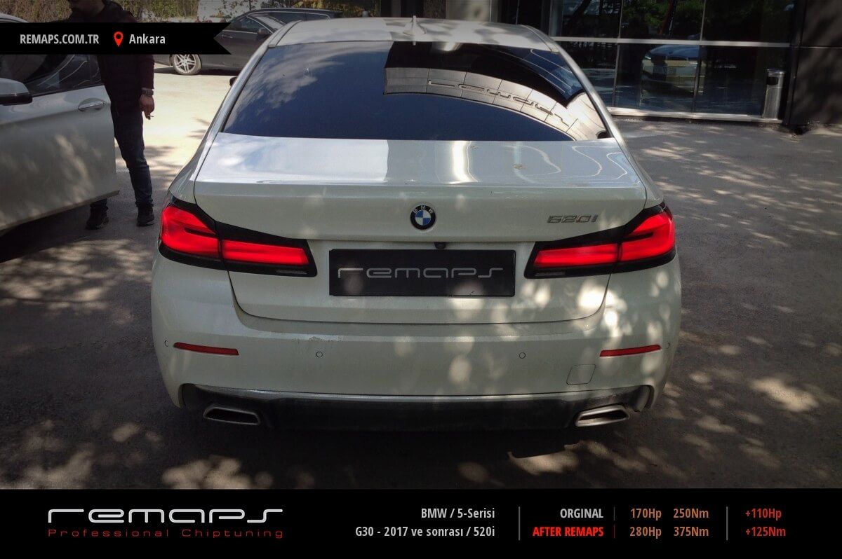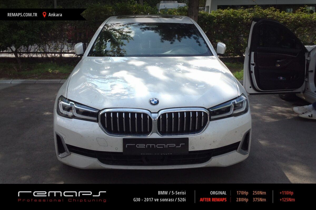 BMW 5-Serisi model benzinli aracınızın ürettiği 170hp / 250nm motor gücünü, Türkiye normlarında hazırladığımız chip tuning (ecu) yazılım uygulaması sonrasında, 280hp / 375nm ’lik performansa ulaşmasını sağlamaktayız. Kazanılan +110hp / + 125nm güç artışı sonrasında aracınızın egzoz emisyon değerleri kesinlikle değişmemekte ve duman atmamaktadır.