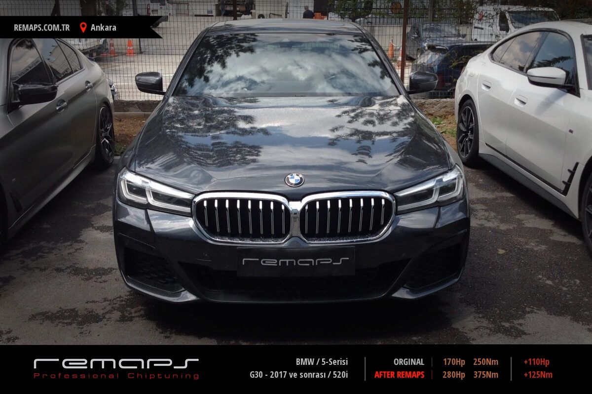 BMW 5-Serisi model benzinli aracınızın ürettiği 170hp / 250nm motor gücünü, Türkiye normlarında hazırladığımız chip tuning (ecu) yazılım uygulaması sonrasında, 280hp / 375nm ’lik performansa ulaşmasını sağlamaktayız. Kazanılan +110hp / + 125nm güç artışı sonrasında aracınızın egzoz emisyon değerleri kesinlikle değişmemekte ve duman atmamaktadır.