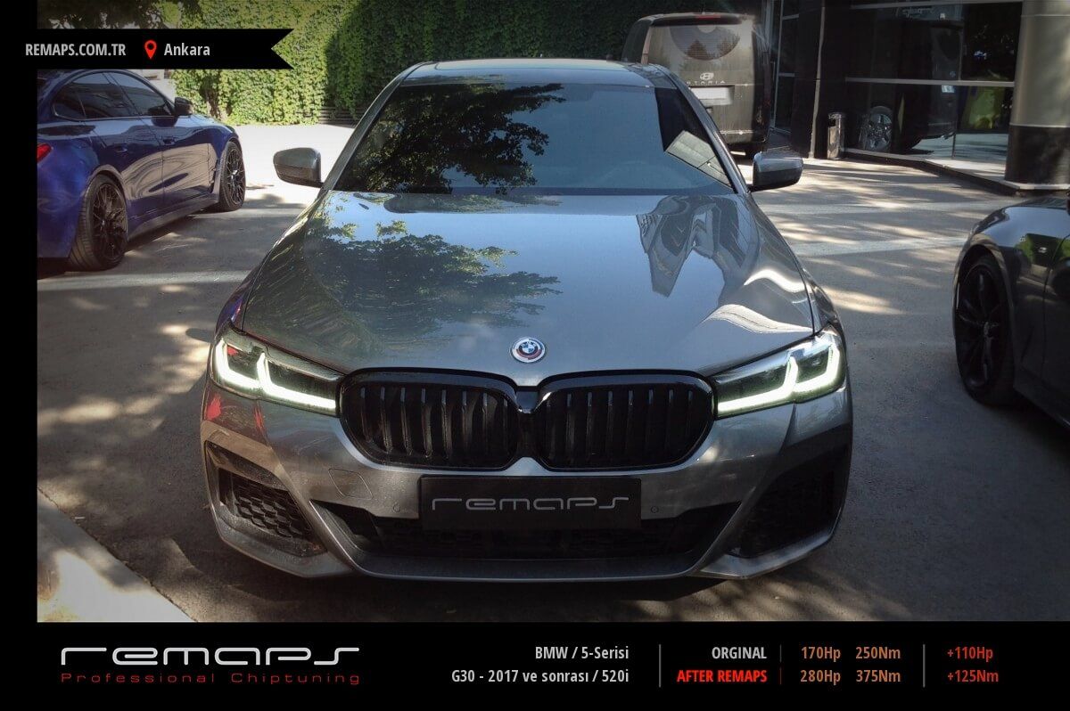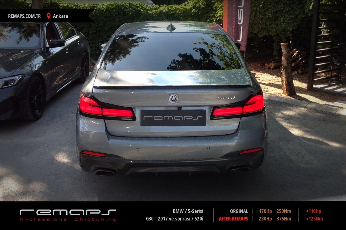 BMW 5-Serisi model benzinli aracınızın ürettiği 170hp / 250nm motor gücünü, Türkiye normlarında hazırladığımız chip tuning (ecu) yazılım uygulaması sonrasında, 280hp / 375nm ’lik performansa ulaşmasını sağlamaktayız. Kazanılan +110hp / + 125nm güç artışı sonrasında aracınızın egzoz emisyon değerleri kesinlikle değişmemekte ve duman atmamaktadır.