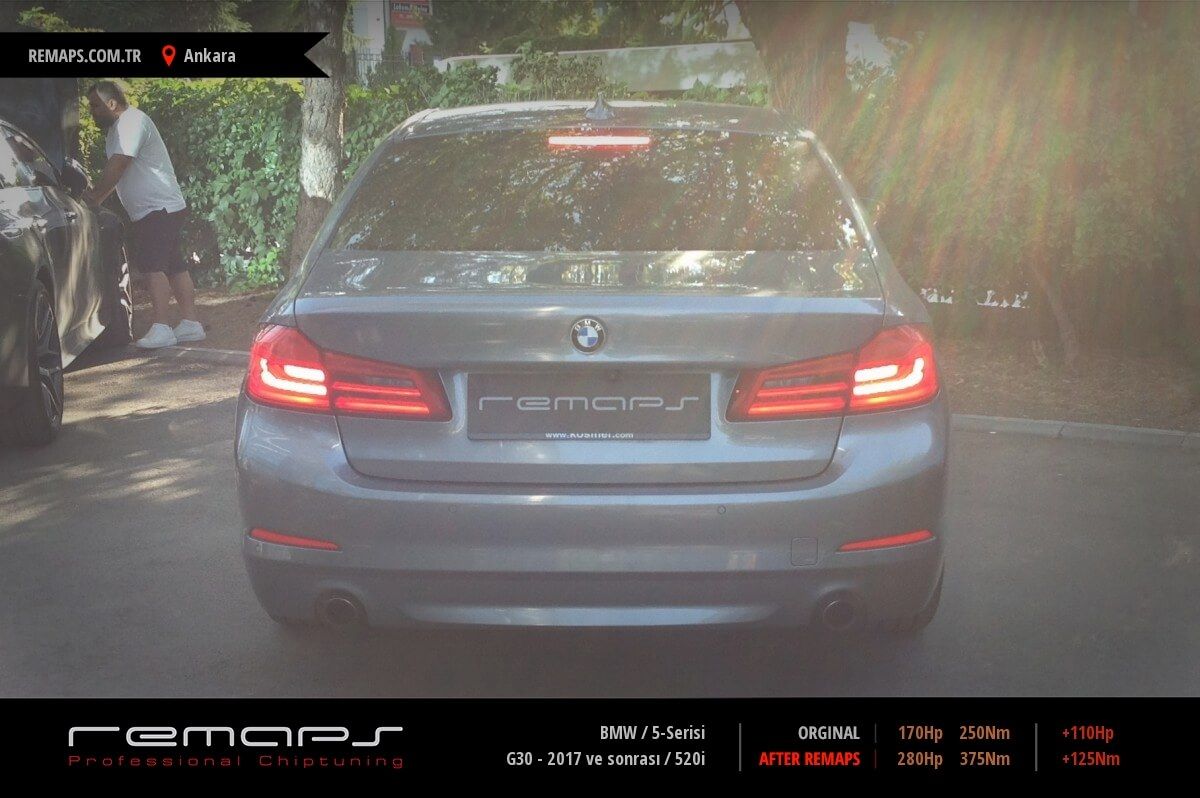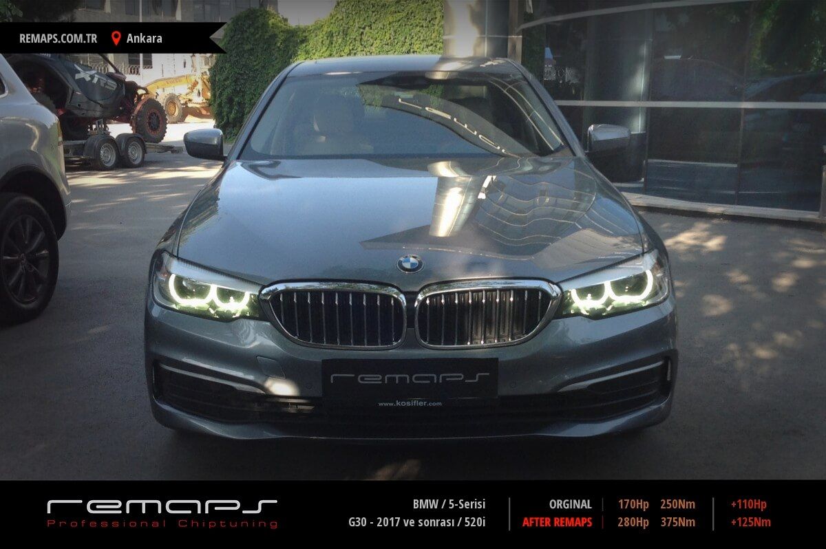BMW 5-Serisi model benzinli aracınızın ürettiği 170hp / 250nm motor gücünü, Türkiye normlarında hazırladığımız chip tuning (ecu) yazılım uygulaması sonrasında, 280hp / 375nm ’lik performansa ulaşmasını sağlamaktayız. Kazanılan +110hp / + 125nm güç artışı sonrasında aracınızın egzoz emisyon değerleri kesinlikle değişmemekte ve duman atmamaktadır.