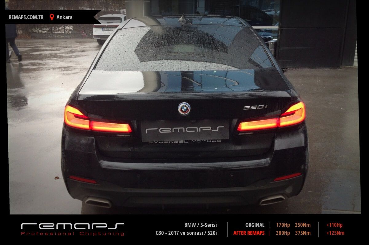 BMW 5-Serisi model benzinli aracınızın ürettiği 170hp / 250nm motor gücünü, Türkiye normlarında hazırladığımız chip tuning (ecu) yazılım uygulaması sonrasında, 280hp / 375nm ’lik performansa ulaşmasını sağlamaktayız. Kazanılan +110hp / + 125nm güç artışı sonrasında aracınızın egzoz emisyon değerleri kesinlikle değişmemekte ve duman atmamaktadır.