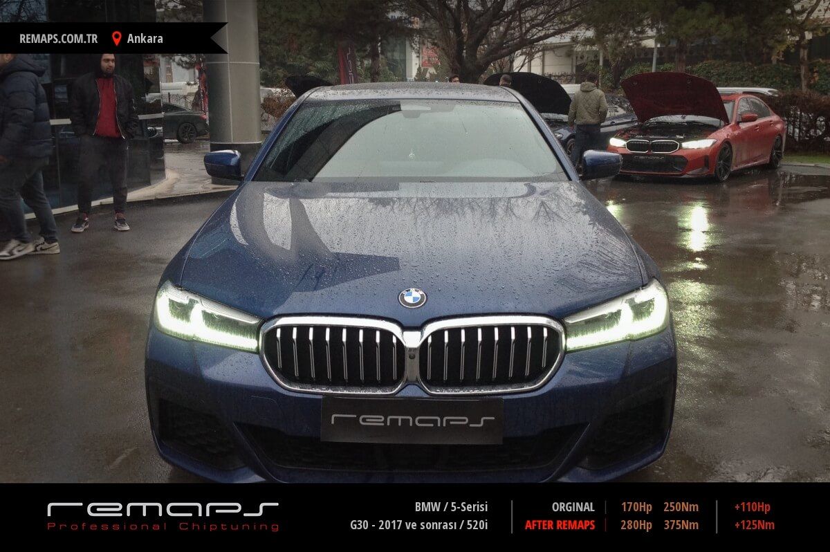 BMW 5-Serisi model benzinli aracınızın ürettiği 170hp / 250nm motor gücünü, Türkiye normlarında hazırladığımız chip tuning (ecu) yazılım uygulaması sonrasında, 280hp / 375nm ’lik performansa ulaşmasını sağlamaktayız. Kazanılan +110hp / + 125nm güç artışı sonrasında aracınızın egzoz emisyon değerleri kesinlikle değişmemekte ve duman atmamaktadır.
