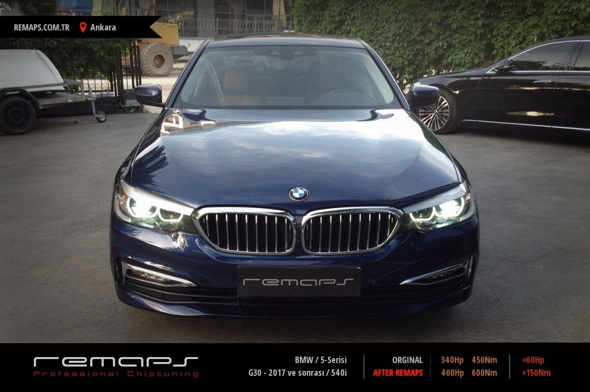 2018 BMW 540ix Aracım yazılım sonrası 100-200 hızlanmada 14,5sn’den 11,5sn’ye kadar gelişme gösterdi. Sarfiyat 14,5lt/100km’den 13lt/100km’ye geriledi. Bu fiyata sağladığı performans artışı gerçekten muazzam. Son sürat ise gps’den okunan değerde 288kph’e kadar çıktı. BMW 5-Serisi 540i - 340Hp @400 Hp