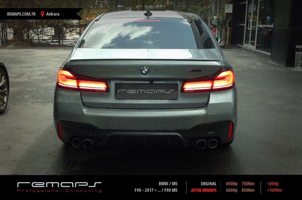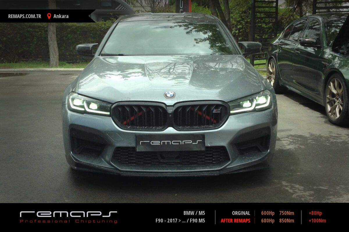 BMW M5 model benzinli aracınızın ürettiği 600hp / 750nm motor gücünü, Türkiye normlarında hazırladığımız chip tuning (ecu) yazılım uygulaması sonrasında, 680hp / 850nm ’lik performansa ulaşmasını sağlamaktayız. Kazanılan +80hp / + 100nm güç artışı sonrasında aracınızın egzoz emisyon değerleri kesinlikle değişmemekte ve duman atmamaktadır.