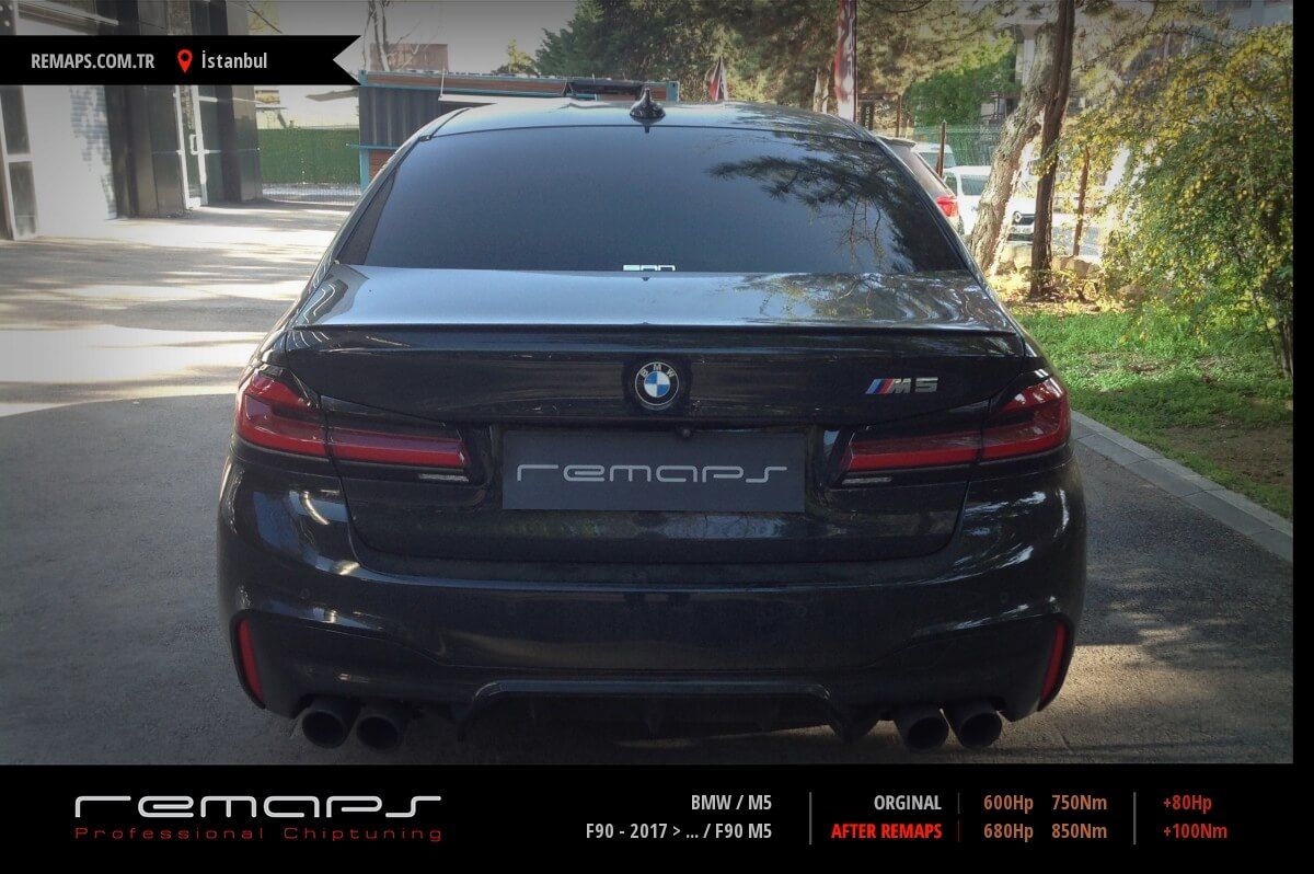 BMW M5 model benzinli aracınızın ürettiği 600hp / 750nm motor gücünü, Türkiye normlarında hazırladığımız chip tuning (ecu) yazılım uygulaması sonrasında, 680hp / 850nm ’lik performansa ulaşmasını sağlamaktayız. Kazanılan +80hp / + 100nm güç artışı sonrasında aracınızın egzoz emisyon değerleri kesinlikle değişmemekte ve duman atmamaktadır.