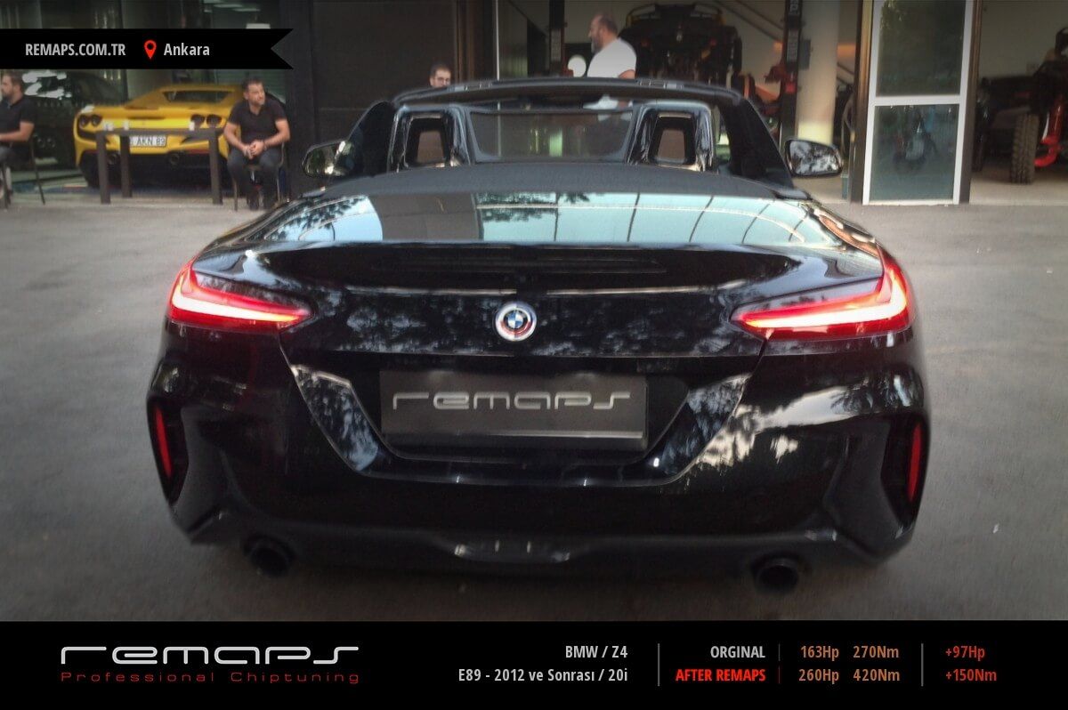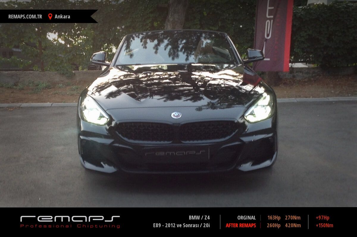 BMW Z4 model benzinli aracınızın ürettiği 163hp / 270nm motor gücünü, Türkiye normlarında hazırladığımız chip tuning (ecu) yazılım uygulaması sonrasında, 260hp / 420nm ’lik performansa ulaşmasını sağlamaktayız. Kazanılan +97hp / + 150nm güç artışı sonrasında aracınızın egzoz emisyon değerleri kesinlikle değişmemekte ve duman atmamaktadır.